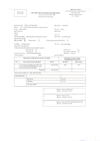 1. Cấp cho: Công ty TNHH MTV VIPICO; Mã số doanh nghiệp: 0104033560 -